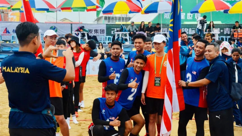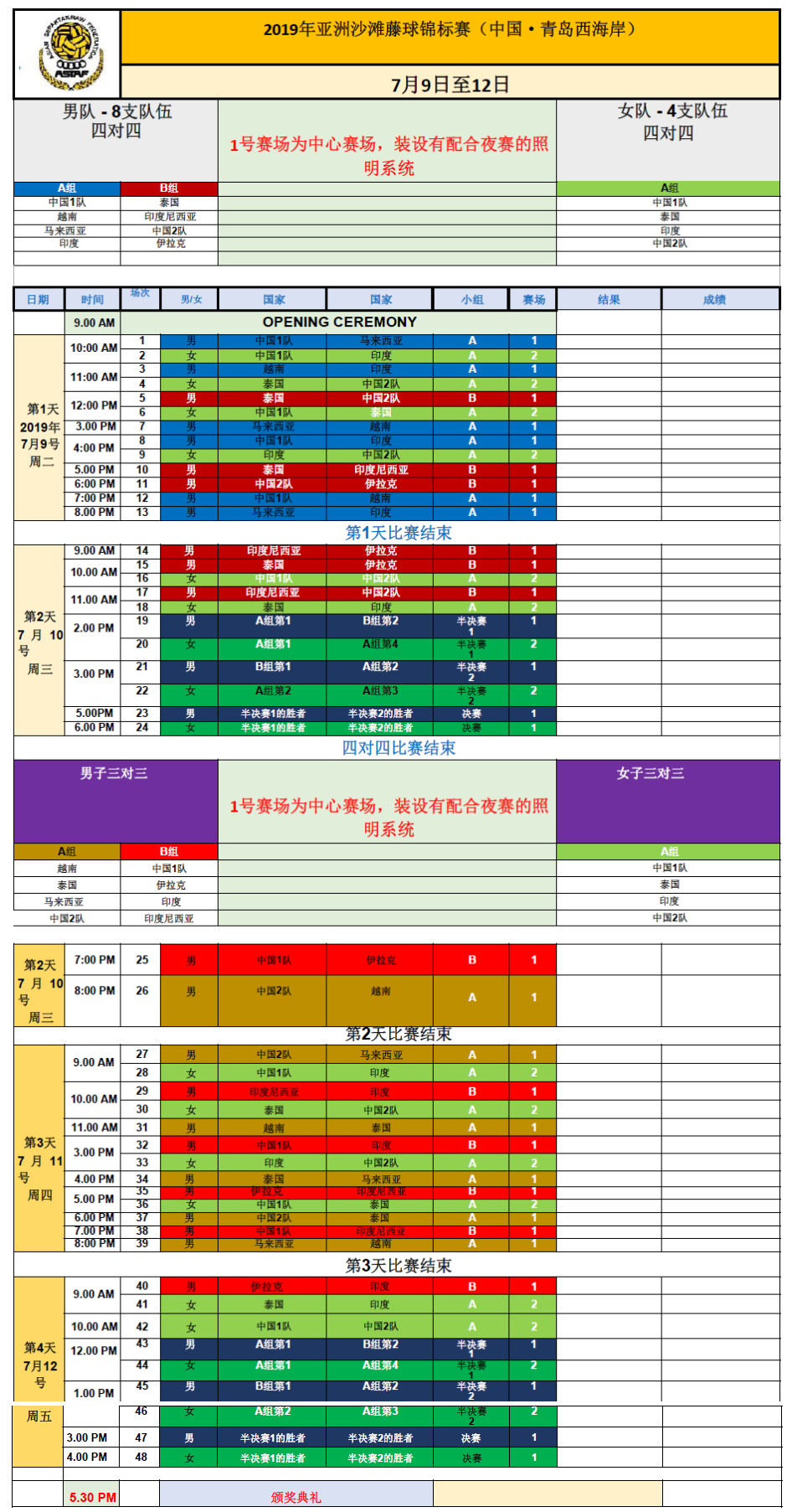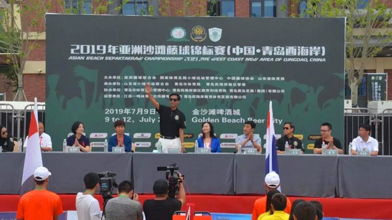 7月9日,2019亞洲沙灘藤球錦標(biāo)賽(中國·青島西海岸)在金沙灘啤酒城開賽。來自中國、越南、泰國、印度尼西亞、印度、馬來西亞、伊拉克7個國家的12支代表隊伍將為大家奉獻一場精彩絕倫的視覺盛宴。