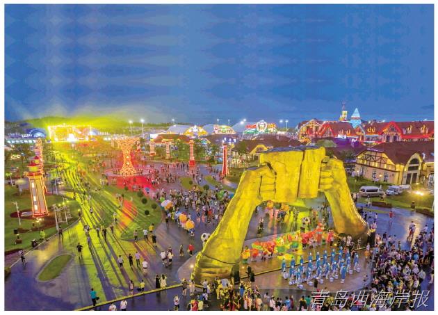 啤酒節(jié)期間,金沙灘啤酒城內(nèi)花開全城、彩燈璀璨的景象令市民游客嘆為觀止。每當夜幕降臨,啤酒城精心打造的24組造型花藝組合、47組自貢彩燈燈組和10組藝術燈光互動裝置,營造了“白天游花?!薄耙雇碣p彩燈”的節(jié)日氛圍。
