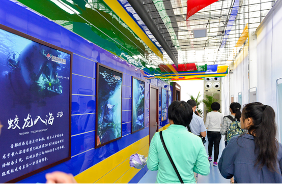 中國館展區(qū)面積3500平方米,由中國極地研究中心、國家深?;毓芾碇行?、中國船舶重工集團、中國航天科技集團等22家權(quán)威機構(gòu)和知名企業(yè)攜海洋科技、航天科技成果集體亮相。展會現(xiàn)場,觀眾通過國內(nèi)首次亮相的“蛟龍?zhí)?/span>”模擬操控系統(tǒng),真切體驗到“蛟龍?zhí)?/span>”水下作業(yè)的場景;天宮二號1:1模型體驗倉前排起長隊,觀眾可身臨其境感受太空的魅力;而在5D影院,我國首部深海立體電影《蛟龍入海》,展示了奇幻的海底世界和當前深海探測前沿成果。此外,極地科考VR體驗、大洋科考模擬體驗、船舶模擬駕駛、水下機器人演示等現(xiàn)場互動項目,也激發(fā)了現(xiàn)場觀眾的極大興趣。